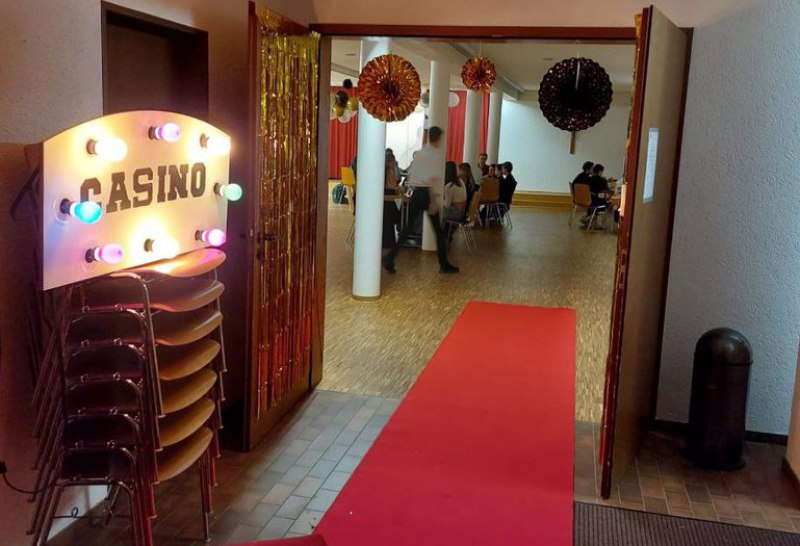 Eintrittskarte dabei? Dann bitte einmal zur Gaderobe, über den roten Teppich und an den Türstehern vorbei. Nehmen Sie gerne an einem der Spieltische Platz, wir servieren Ihnen sofort einen Cocktail. Sollten Sie Hunger bekommen können Sie sich jederzeit am Büffet bedienen. Am Ende des Saales finden Sie die Fotobox sowie den Dancefloor. Rechts am Glücksrad können Sie die gewonnenen Chips einlösen. Denken Sie außerdem daran, im Wettbüro rechtszeitig Ihre Tipps für das große Pferderennen am Ende des Abends abzugeben. Noch Fragen?